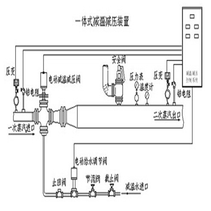 是采用控制阀体内的启闭件的开度来调节介质的流量,将介质的压力降低,减温减压阀同时借助阀后压力的作用调节启闭件的开度,使阀后压力保持在一定范围内,并在阀体内或阀后喷入冷却水,将介质的温度降低,这种阀门称为减压减温阀。该阀的特点,是在进口压力不断变化的情况下,保持出口听压力和温度值在一定的范围内。